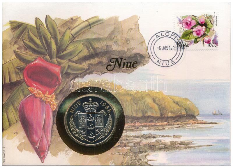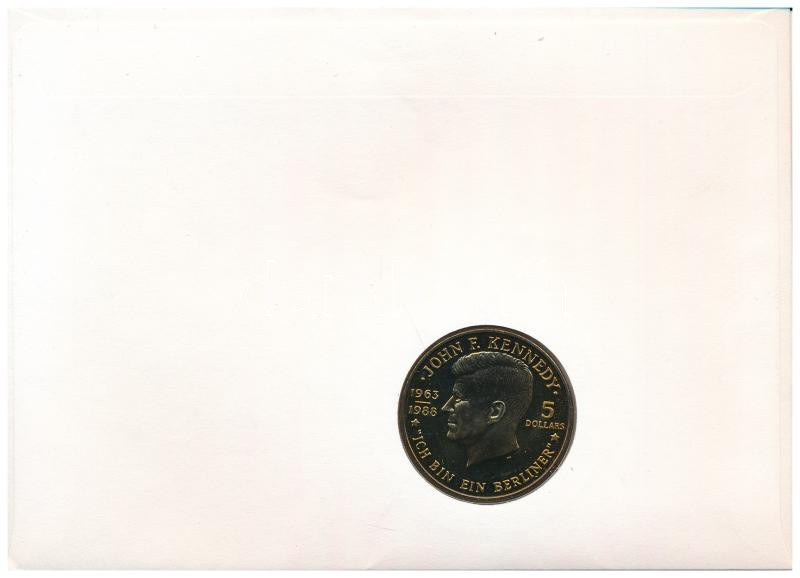Niue 1988. 5$ Cu-Ni "J. F. Kennedy - Berlini vagyok" forgalomba nem került emlékérme felbélyegzett borítékban, bélyegzéssel, német nyelvű tájékoztatóval T:1 Niue 1988. 5 Dollars Cu-Ni "J. F. Kennedy - Ich bin ein berliner" non-circulating commemorative coin in envelope with stamp, cancellation and a prospectus in german C:UNC