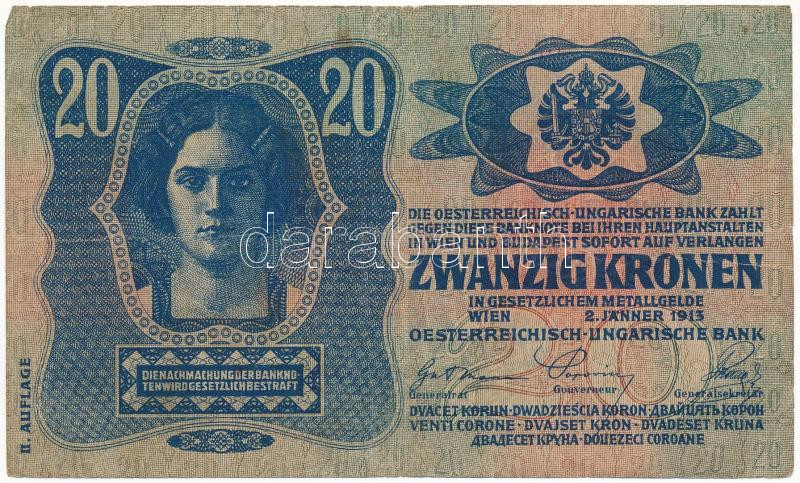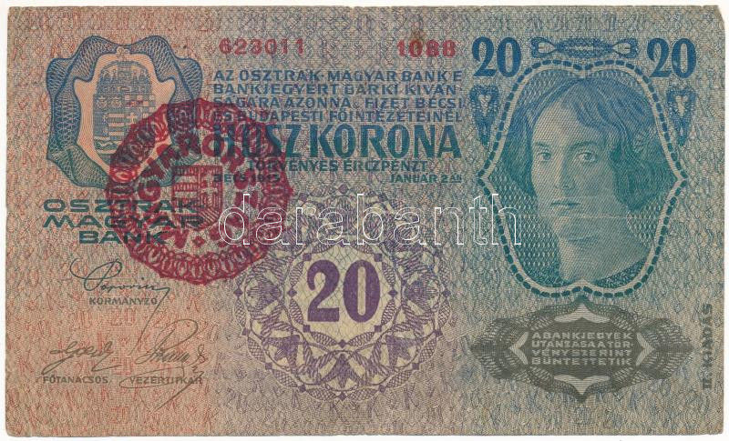 1913. 20K II. kiadás, piros "MAGYARORSZÁG" felülbélyegzéssel... https://www.darabanth.com/de/429-Fernauktion/429.0/Numismatik/Ungarische-Banknoten~2000009/1913-20K-II-kiadas-piros-MAGYARORSZAG-felulbelyegzessel-1088-623011-TIII-Adamo-K18M~II2757330