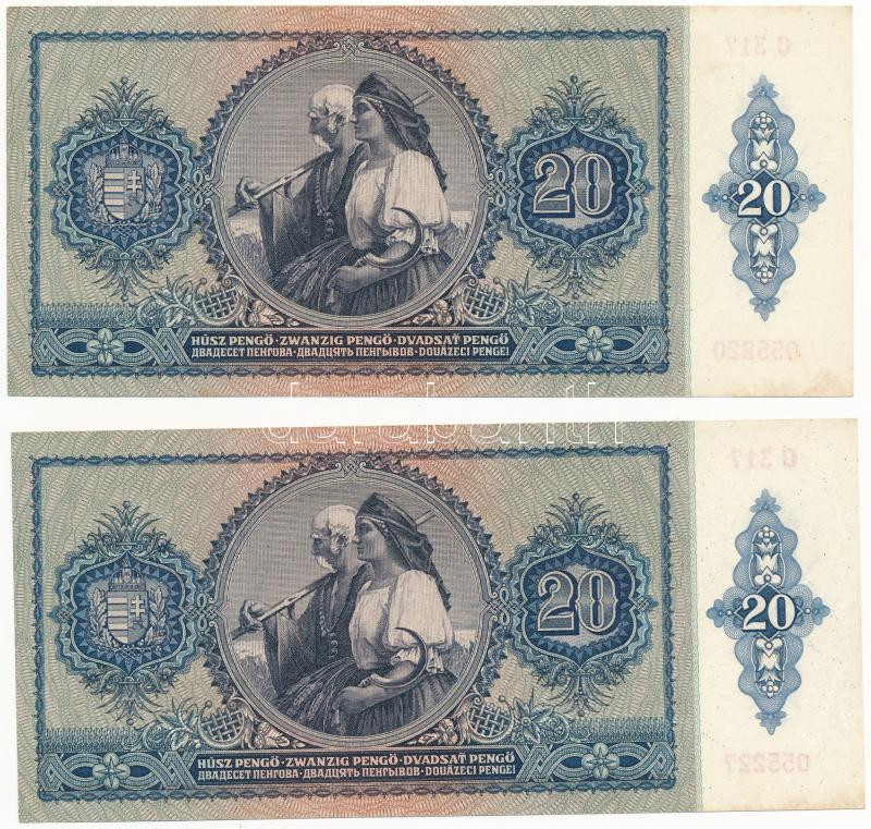 Beschreibung: 1941. 20P (4x) közeli sorszámok "C 317 055220, C 317 055227, C 317 055232, C 317 055239" T:I-