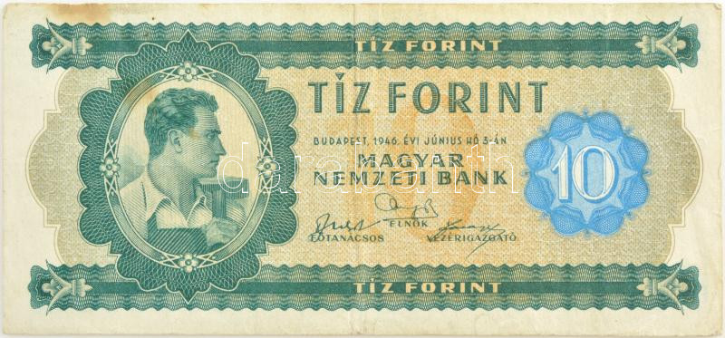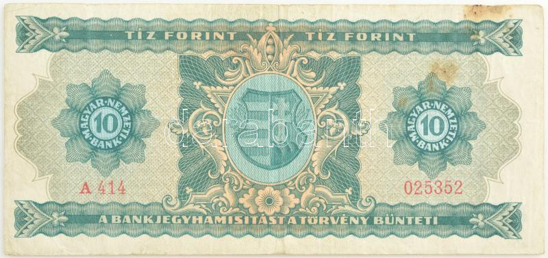 1946. 10Ft "A 414 025352" T:III fo. Adamo F1 https://www.darabanth.com/de/429-Fernauktion/429.0/Numismatik/Ungarische-Banknoten~2000009/1946-10Ft-A-414-025352-TIII-fo-Adamo-F1~II2755108
