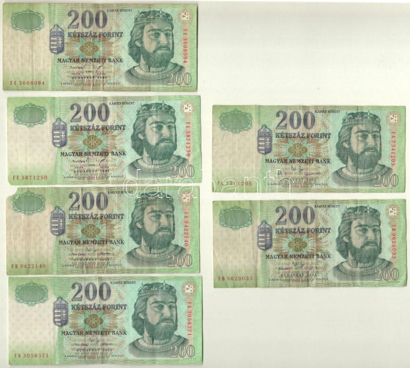 1998-2007. 200Ft (9db, 6xklf évjárat) + 2006. 500Ft "EC" &qu... https://www.darabanth.com/de/429-Fernauktion/429.0/Numismatik/Ungarische-Banknoten~2000009/1998-2007-200Ft-9db-6xklf-evjarat-plus-2006-500Ft-EC-1956-os-forradalom-TIII-kozte-szep-p~II2756590