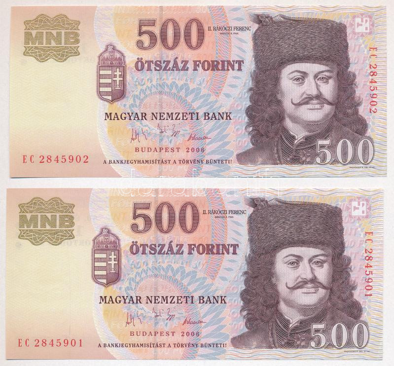 2006. 500Ft (2x) "A forradalom 50. évfordulója 1956. október 23.&... https://www.darabanth.com/de/429-Fernauktion/429.0/Numismatik/Ungarische-Banknoten~2000009/2006-500Ft-2x-A-forradalom-50-evforduloja-1956-oktober-23-sorszamkovetok-EC-2845901-~II2752140