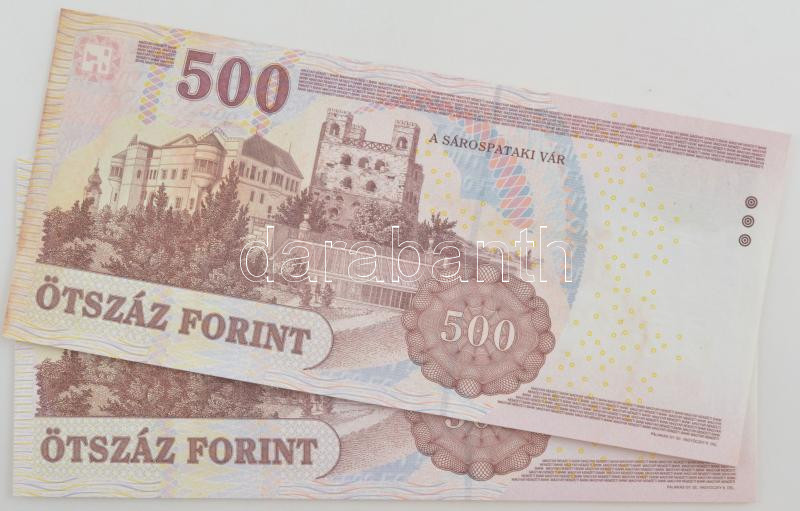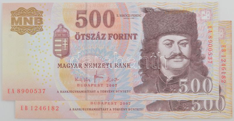 Beschreibung: 2007. 500Ft (2x) "EA" és "EB" betűjellel kezdődő sorszámokkal T:I,I- az egyiken folt