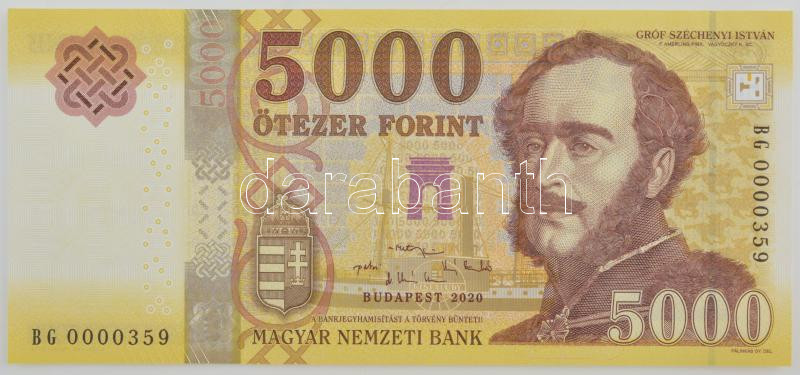 Beschreibung: 2020. 5000Ft "BG 0000359" T:I,I- kissé hullámos papír