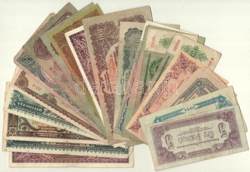 Beschreibung: 21db vegyes pengő, Vörös Hadsereg pengő, adópengő bankjegy T:III,III- nagyobb szakadás is