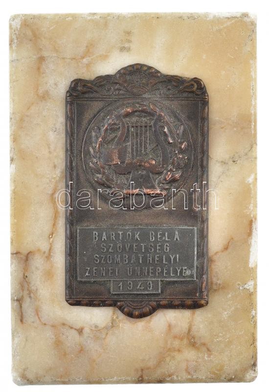 Beschreibung: 1949. "Bartók Béla Szövetség Szombathelyi Zenei Ünnepélye" bronz emlékérem (69x39mm) márvány táblán (101x68mm) T:2