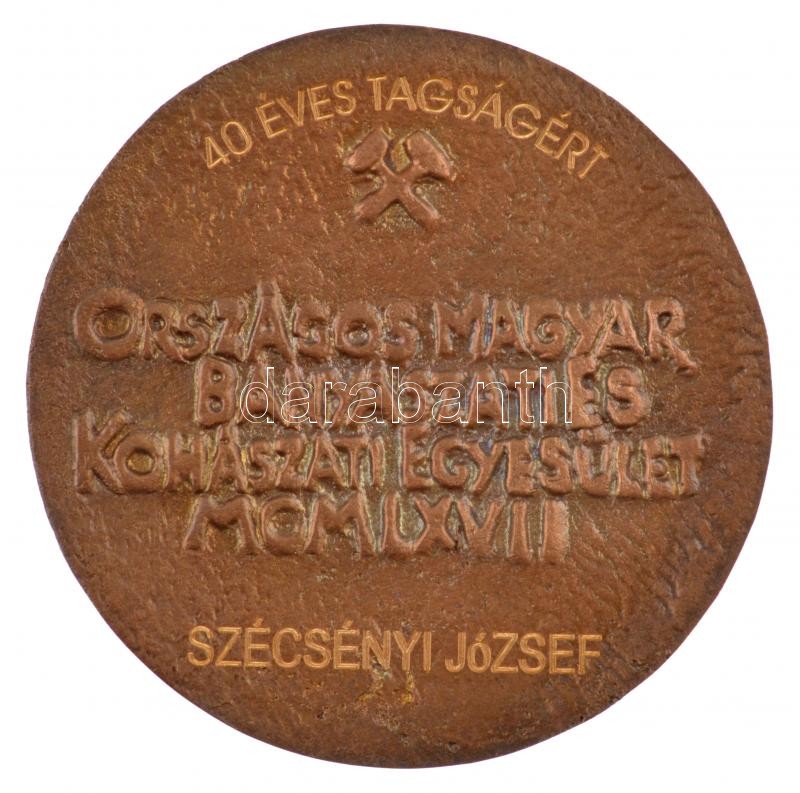 1967. "Soltz Vilmos 1833-1901 / 40 éves tagságért - Országos Magyar Bányászati és Kohászati Egyesület - Szécsényi József" Br emlékérem eredeti tokban (67mm) T:1