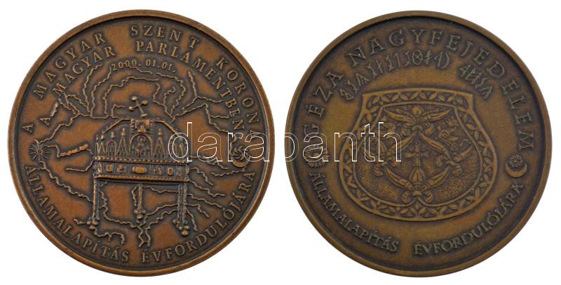 2000. "Magyar Államalapítás Emlékérem Sorozat - Magyar koronázási jelvények" bronz emlékérem (42,5mm) + 2000. "Magyar Államalapítás Emlékérem Sorozat - Géza nagyfejedelem" bronz emlékérem (42,5mm) T:1-