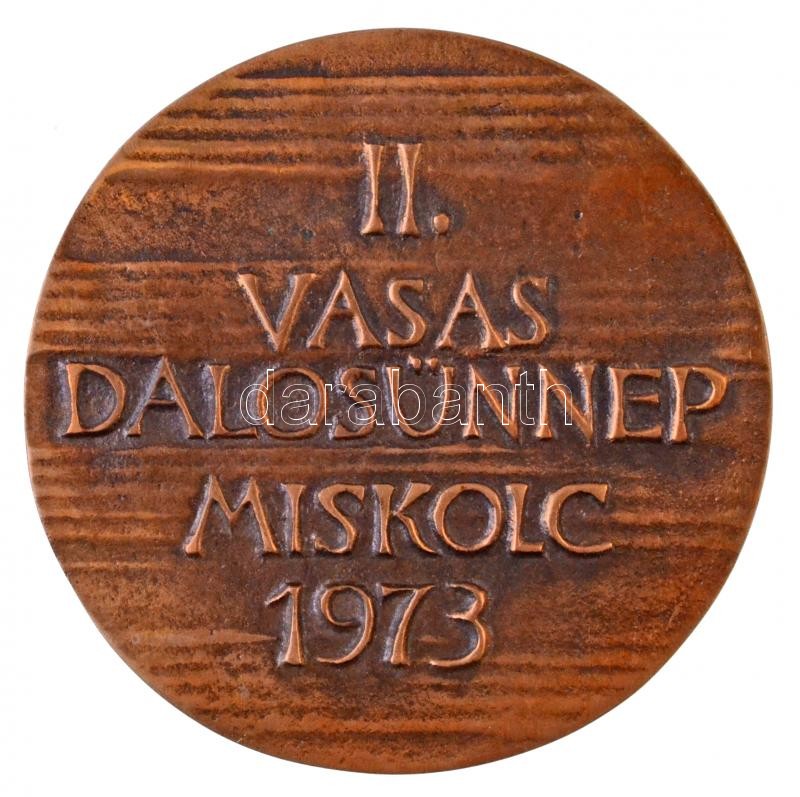 Beschreibung: Asszonyi Tamás (1942-) 1973. "II. Vasas Dalosünnep Miskolc" Br emlékplakett (80mm) T:2