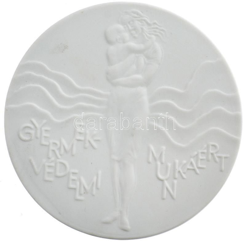 DN "Gyermekvédelmi munkáért" egyoldalas porcelán érdemérem, hátoldalán "Tamás Ákos Herend" gyártói jelzéssel, eredeti dísztokban (107mm) T:1