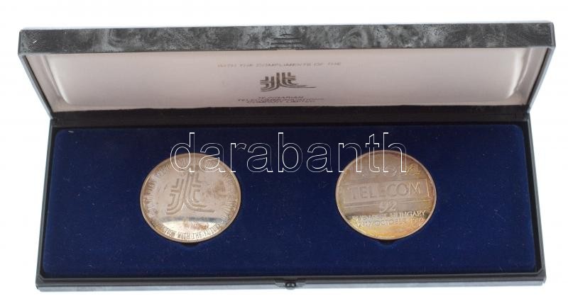 Beschreibung: Lebó Ferenc (1960-) 1992. "Hungarian Telecommunications Company Limited / Budapest Lánchíd" + "Europa Telecom, 1992.október 12-17 / Hősök Tere" Ag emlékérem pár műanyag dísztokban (31,33g és 31,36g/0.925/42,5mm) T:1- (PP) patina, ujjlenyomat