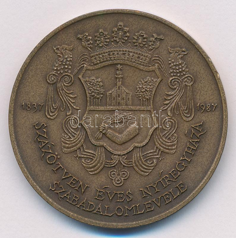 Nagy Lajos (1949-) 1987. "MÉE Szabolcs-Szatmár megyei szervezet / Százötven éves Nyíregyháza szabadalomlevele 1837-1987 - V. Ferdinánd" bronz emlékérem (42,5mm) T:1- Adamo NH9
