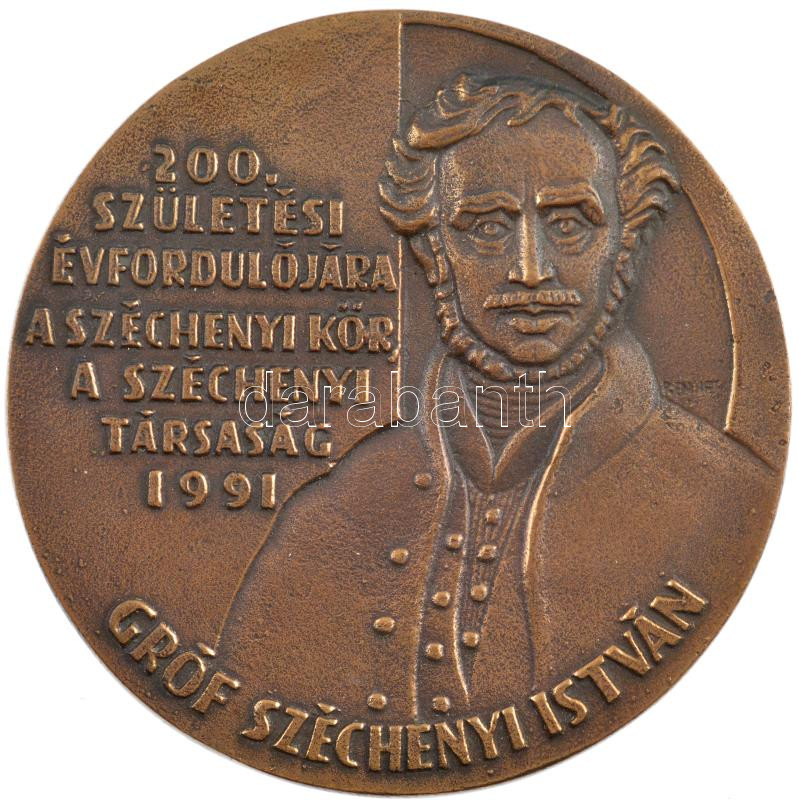 Renner Kálmán (1927-1994) 1991. "Gróf Széchenyi István 200. születési évfordulójára - A Széchenyi Kör, a Széchenyi Társaság 1991" kétoldalas, öntött bronz emlékérem (100mm) T:1-