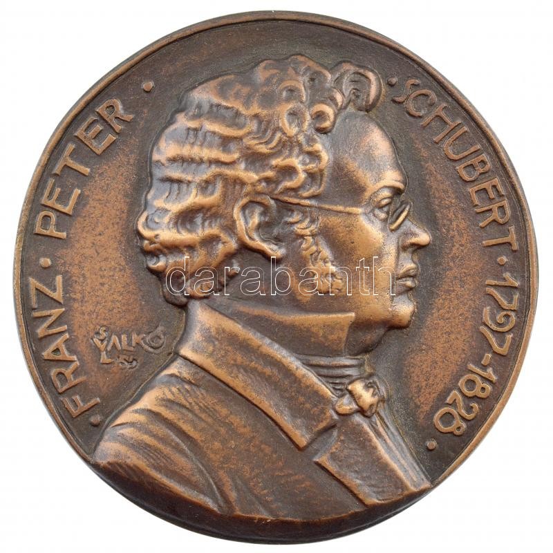 Solymári Valkó László (1909-1984) 1955. "Franz Peter Schubert 1797-1828" egyoldalas öntött bronz plakett (87mm) T:1