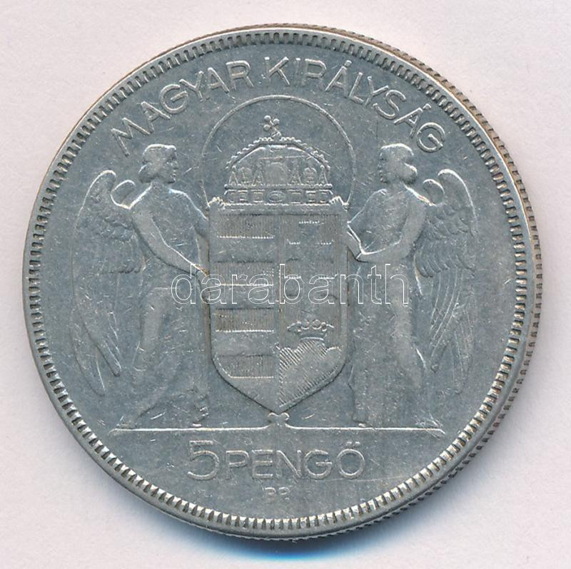 1930. 5P Ag "Horthy jobbra" T:2-,3 Adamo P8 https://www.darabanth.com/de/429-Fernauktion/429.0/Numismatik/Ungarische-Munzen-und-Munzen-mit-ungarischem-Munzzeichen~2000010/1930-5P-Ag-Horthy-jobbra-T2-3-Adamo-P8~II2749922