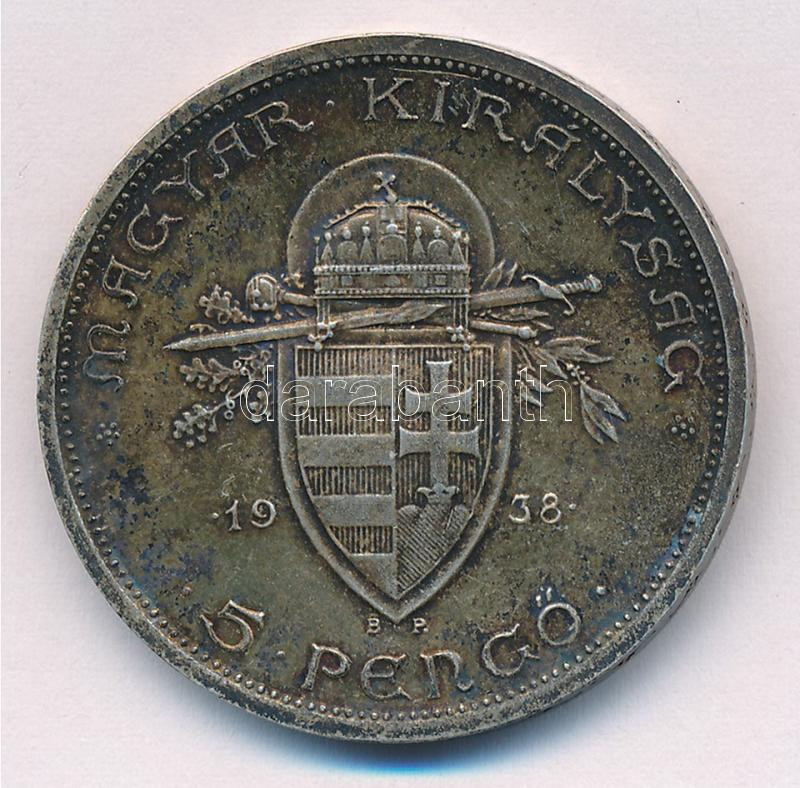 1938. 5P Ag "Szent István" T:1- patina Adamo P8.1 https://www.darabanth.com/de/429-Fernauktion/429.0/Numismatik/Ungarische-Munzen-und-Munzen-mit-ungarischem-Munzzeichen~2000010/1938-5P-Ag-Szent-Istvan-T1-patina-Adamo-P81~II2756155
