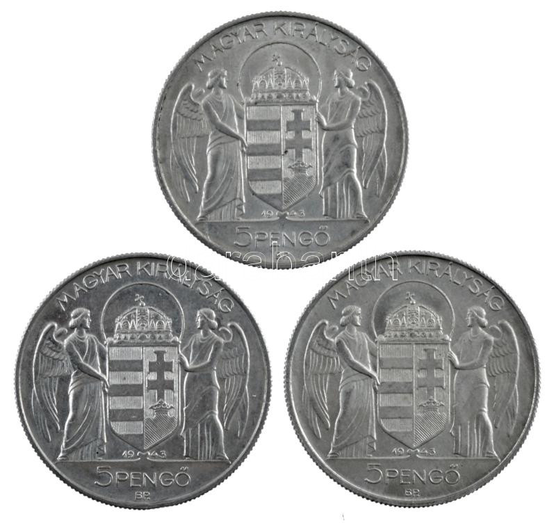1943. 5P Al "Horthy Miklós születésének 75. évfordulójára" (... https://www.darabanth.com/de/429-Fernauktion/429.0/Numismatik/Ungarische-Munzen-und-Munzen-mit-ungarischem-Munzzeichen~2000010/1943-5P-Al-Horthy-Miklos-szuletesenek-75-evfordulojara-3x-T2-Adamo-P83~II2748800