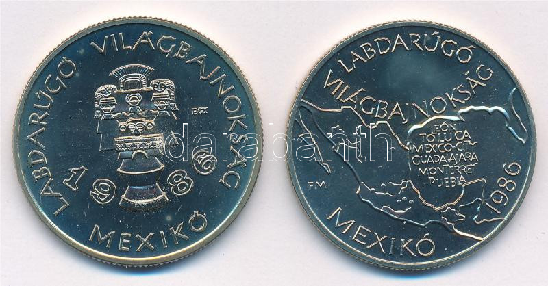 Beschreibung: 1985. 100Ft alpakka "Labdarúgó Világbajnokság 1986. - Mexikó" + 100Ft alpakka "Labdarúgó Világbajnokság 1986. - Mexikó térkép" T:1- kis patina Adamo EM92, EM93