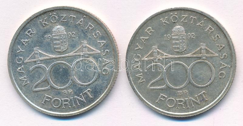 1992. 200Ft Ag "MNB" (2x) T:2 patina, kis ph