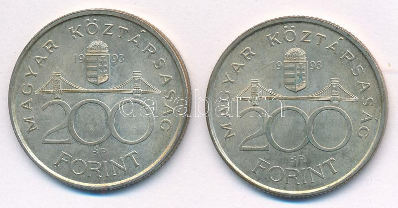 Beschreibung: 1993. 200Ft Ag "MNB" (2x) T:1-,2 patina Adamo F13