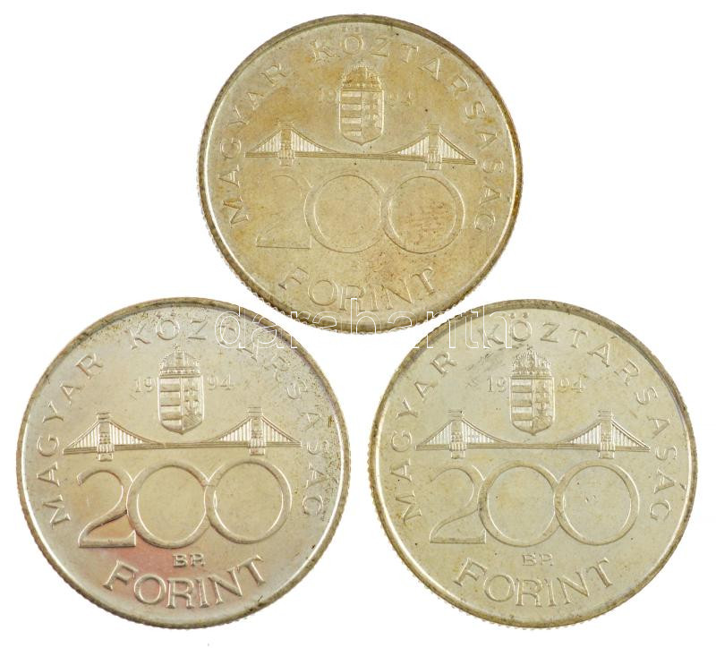 1994. 200Ft Ag "Deák" (3x) T:1-,2 Adamo F13 https://www.darabanth.com/de/429-Fernauktion/429.0/Numismatik/Ungarische-Munzen-und-Munzen-mit-ungarischem-Munzzeichen~2000010/1994-200Ft-Ag-Deak-3x-T1-2-Adamo-F13~II2747691