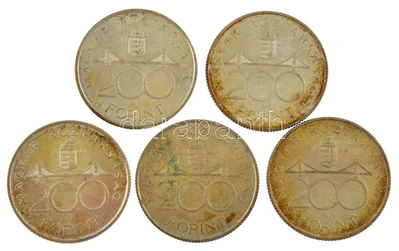 Beschreibung: 1994. 200Ft Ag "Deák" (5x) T:1-,2 patina