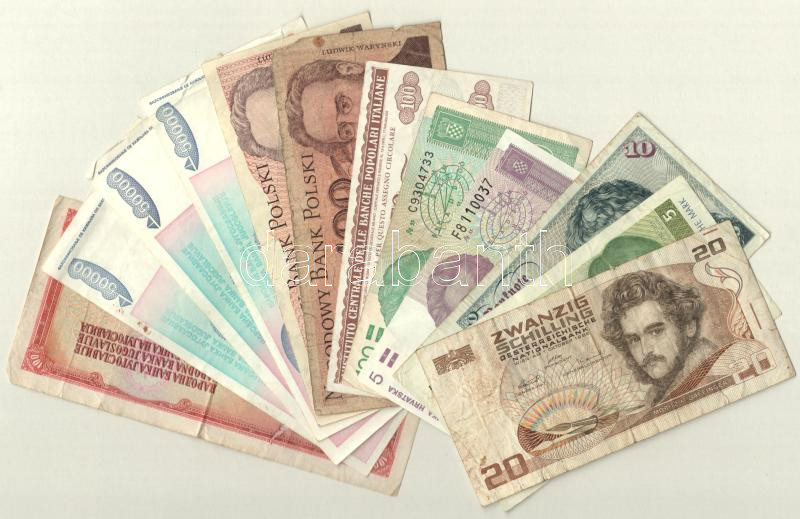 12db-os külföldi bankjegytétel, közte Ausztria 1986. 20Sch + NSZK 1991. 5M + 1980. 10M T:III-IV