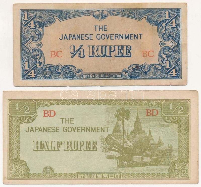 Burma / Japanese occupation 1942-1944. 1/4 Rupee + 1/2 Rupee C:F