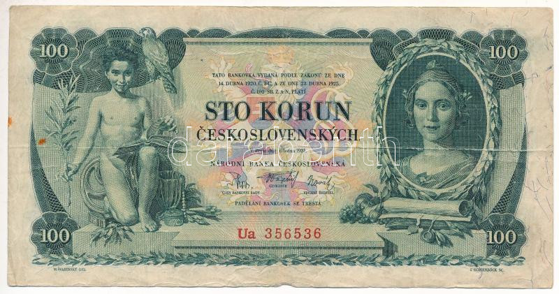 Csehszlovákia 1931. 100K T:III fo. Czechoslovakia 1931. 100 Korun C:F ... https://www.darabanth.com/de/429-Fernauktion/429.0/Numismatik/Weltweit-Banknoten~2000014/Csehszlovakia-1931-100K-TIII-fo-Czechoslovakia-1931-100-Korun-CF-spotted-Krause-23~II2753323