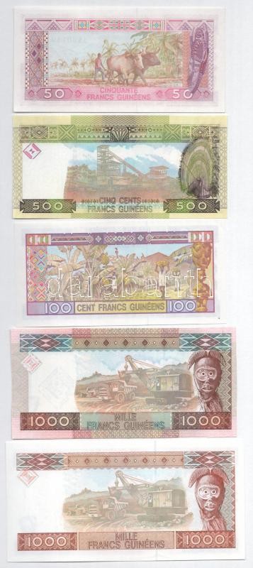Guinea 1985-2010. 50Fr-1000Fr (5xklf) T:I,I- az egyiken kis folt