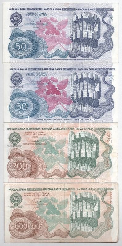 Jugoszlávia 1989. 2.000.000D + 1990. 50D (2x) + 200D T:III közte szép papír, az egyiken kis folt