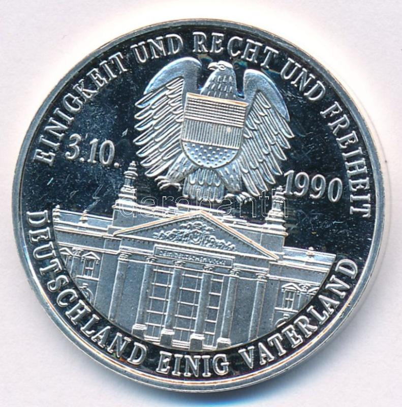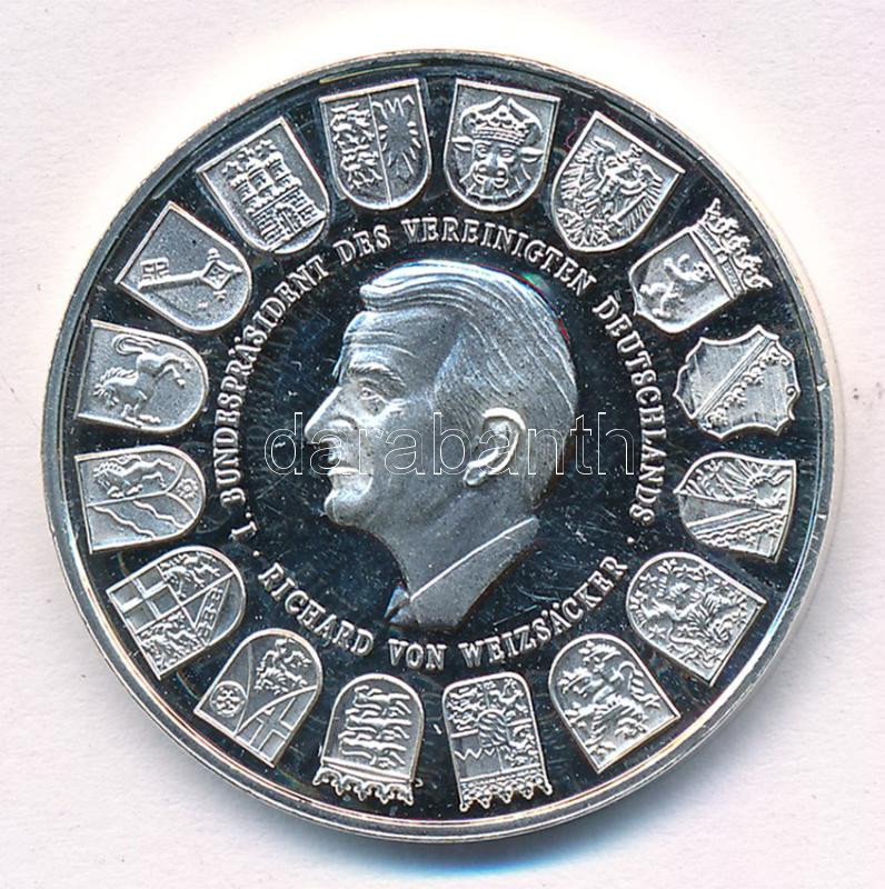 Németország 1990. "Richard von Weizsäcker / Egység, jog és szabadság - Németország, egyesített haza" jelzett Ag emlékérem tokban (20,13g/0.999/32mm) PP Germany 1990. "Richard von Weizsäcker / Einigkeit und Recht und Freiheit - Deutschland einig Vaterland" hallmarked Ag commemorative medallion in case (20,13g/0.999/32mm) C:PP