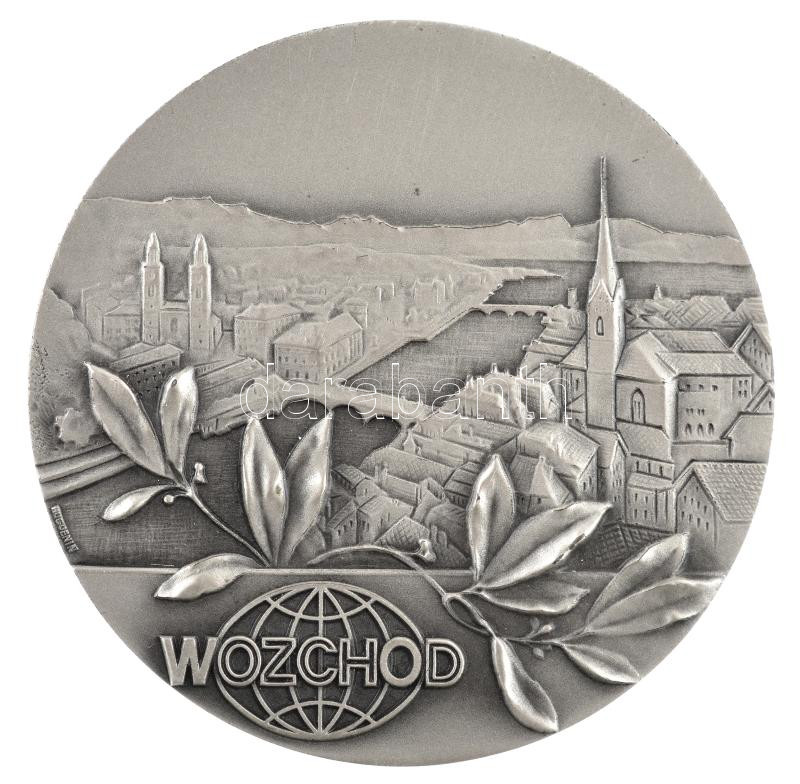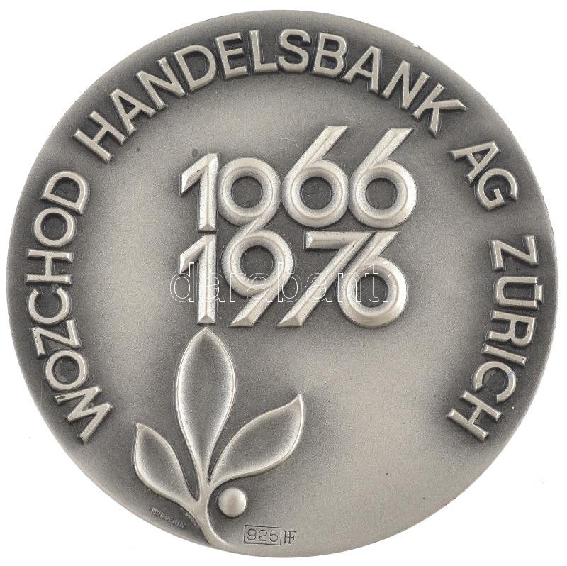 Svájc 1976. "Wozchod Handelsbank AG Zürich 10. évfordulója 1966-1976" kétoldalas, jelzett Ag emlékérem eredeti tokban, "Huguenin" gyártói jelzéssel (31,13g/0.925/40mm) T:1
