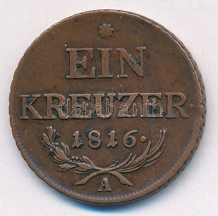 Austria 1816A 1 Kreuzer Cu C:XF pati... https://www.darabanth.com/de/429-Fernauktion/429.0/Numismatik/Weltweit-Munzen~2000015/Ausztria-1816A-1kr-Cu-T2-patina-Austria-1816A-1-Kreuzer-Cu-CXF-patina-Krause-KM23-2113~II2749776