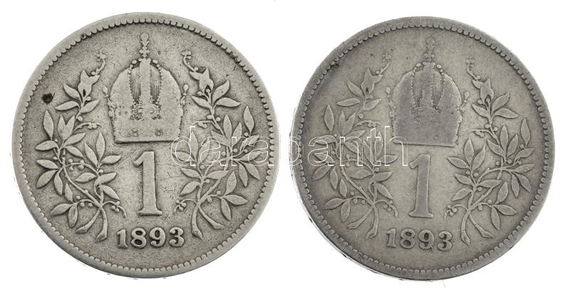 Beschreibung: Ausztria 1893. 1K Ag "Ferenc József" (2x) T:3 patina Austria 1893. 1 Corona Ag "Franz Joseph" (2x) C:F patina Krause KM#2804