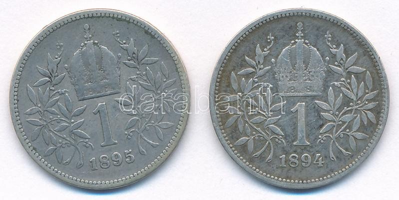 Beschreibung: Ausztria 1894-1895. 1K Ag "Ferenc József" (2xklf) T:3 patina