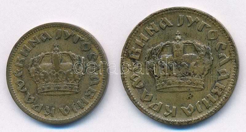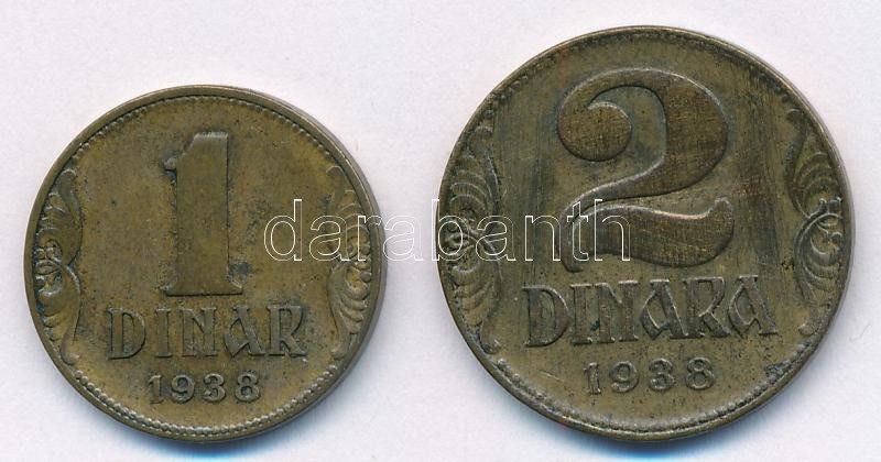 Jugoszlávia 1938. 1D Al-Br + 2D Al-Br nagy korona T:2 patina, karc Yugoslavia 1938. 1 Dinar Al-Br + 2 Dinara Al-Br large crown C:XF patina, scratches Krause KM#19,#20