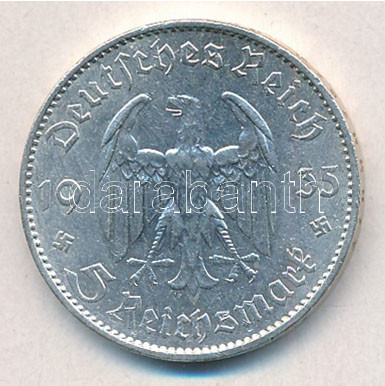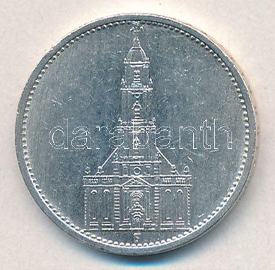 Német Harmadik Birodalom 1935F 5M Ag "Náci hatalom első évfordulója / Potsdami Garrison templom" T:1-,2 kis ph, karc German Third Reich 1935F 5 Mark Ag "The 1st Anniversary of Nazi rule / Potsdam Garrison Church" C:AU,XF small edge error, scratch Krause KM#83