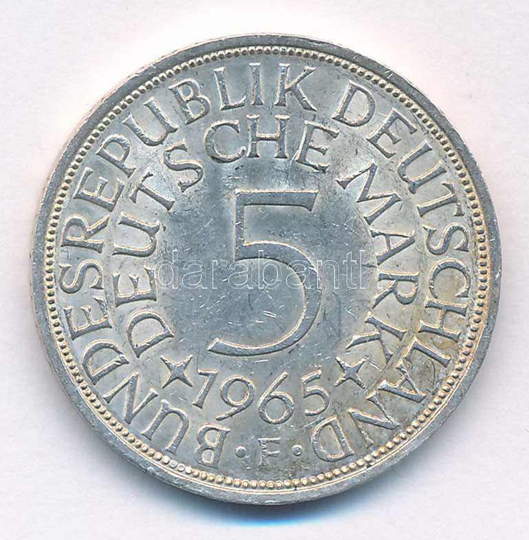 Német Szövetségi Köztársaság 1965D 5M Ag T:2 patina GFR 1965D 5 Mark A... https://www.darabanth.com/de/429-Fernauktion/429.0/Numismatik/Weltweit-Munzen~2000015/Nemet-Szovetsegi-Koztarsasag-1965D-5M-Ag-T2-patina-GFR-1965D-5-Mark-Ag-CXF-patina-Krause-KM23~II2747804