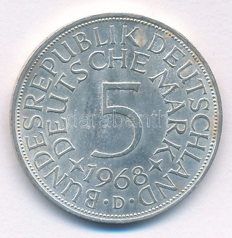 Német Szövetségi Köztársaság 1968D 5M Ag T:1-,2 patina GFR 1968D 5 Mar... https://www.darabanth.com/de/429-Fernauktion/429.0/Numismatik/Weltweit-Munzen~2000015/Nemet-Szovetsegi-Koztarsasag-1968D-5M-Ag-T1-2-patina-GFR-1968D-5-Mark-Ag-CAU-XF-patina-Krau~II2747813
