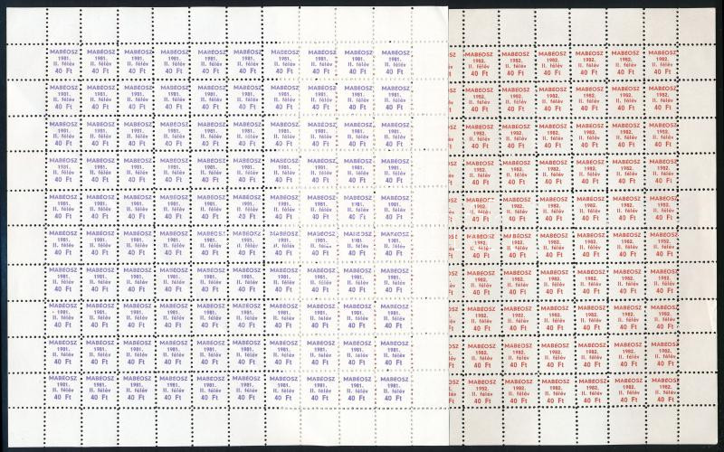 Beschreibung: MABÉOSZ tagsági bélyeg 2 százas teljes ív 1981 és 1982 II. félév