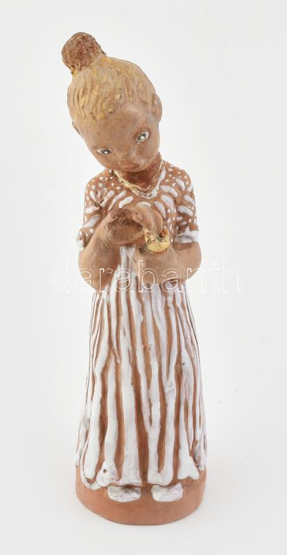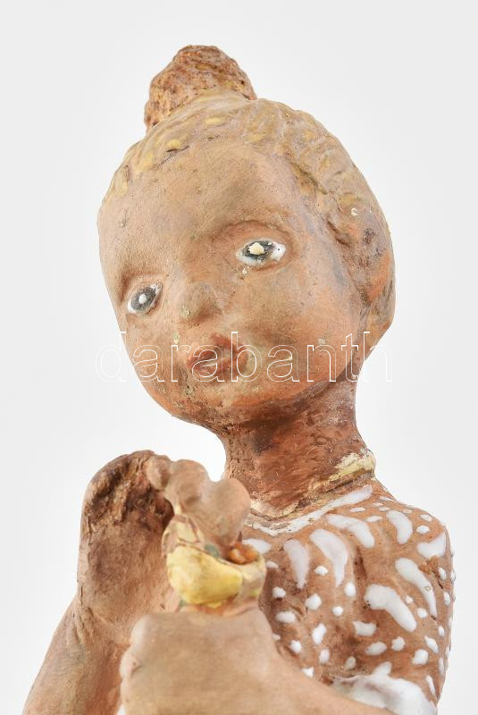 Beschreibung: Kovács Margit (1902-1977): "Szeret nem szeret". Kerámia, jelzett, kopottas festéssel, m: 19,5 cm