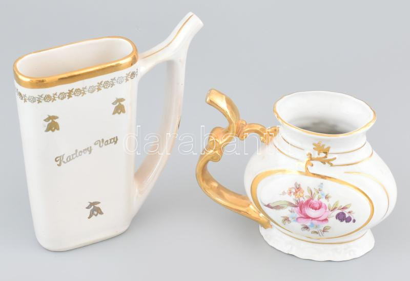 Beschreibung: 2 db cseh porcelán kúrapohár (Karlovy Vary / Karlsbad). Kézzel festett / matricás, jelzett, minimális kopással, m: 15 cm és 11 cm