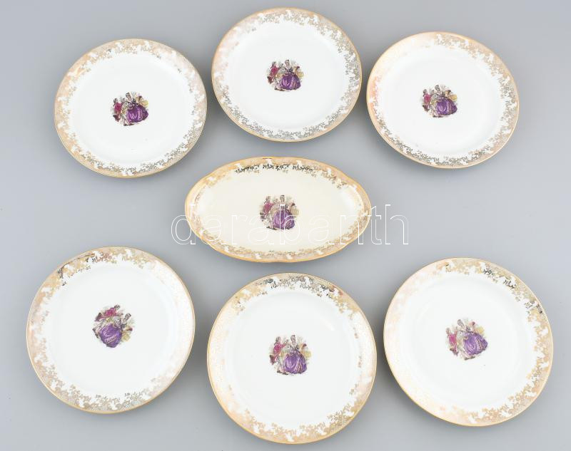 Beschreibung: 7 db Limoges tányér, jelzett, kopásnyomokkal, d: 19,5cm, 22,5x13,5cm