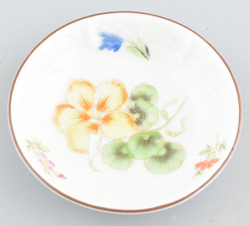 Beschreibung: Herendi 1943 virágmintás tálka, jelzett, kopásokkal, d: 7 cm