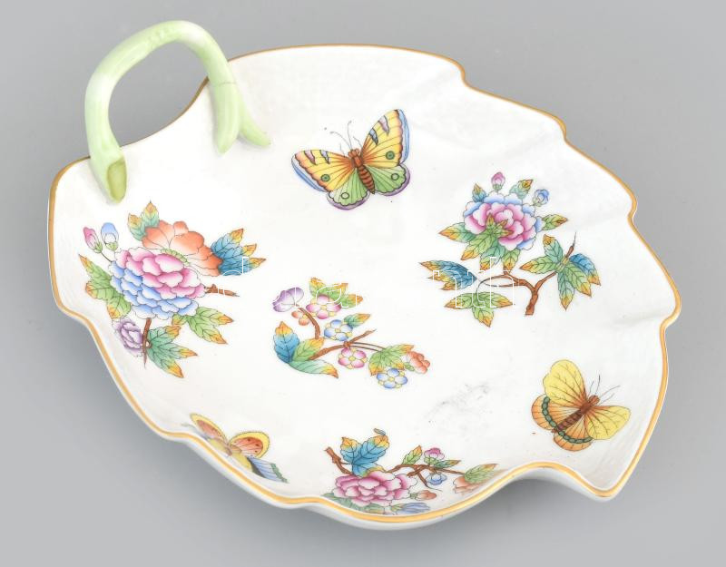 Herendi Viktória mintás leveles tál, kézzel festett, jelzett, fülénél ... https://www.darabanth.com/de/429-Fernauktion/429.0/Porzellan-Keramik-Glass/Porzellan~500007/Herendi-Viktoria-mintas-leveles-tal-kezzel-festett-jelzett-fulenel-kis-repedes-20C39717-5-~II2747211