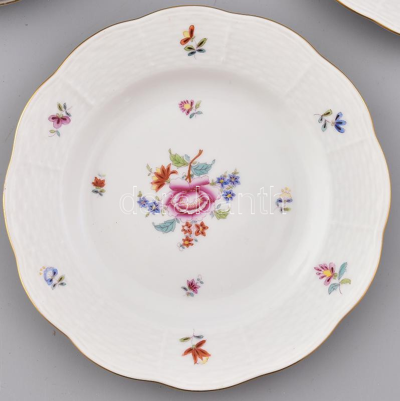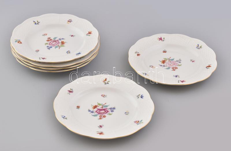 Beschreibung: Herendi virágmintás süteményes tányér, 6db, kézzel festett porcelán, jelzett, kis kopásnyomokkal, d: 16,7 cm
