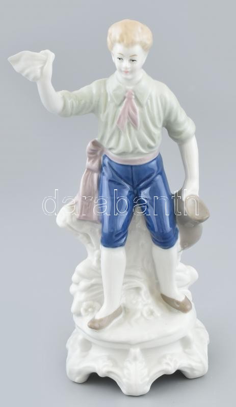 Beschreibung: Német porcelán fiú figura, kézzel festett, jelzett, kis kopásnyomokkal, m: 17,5 cm