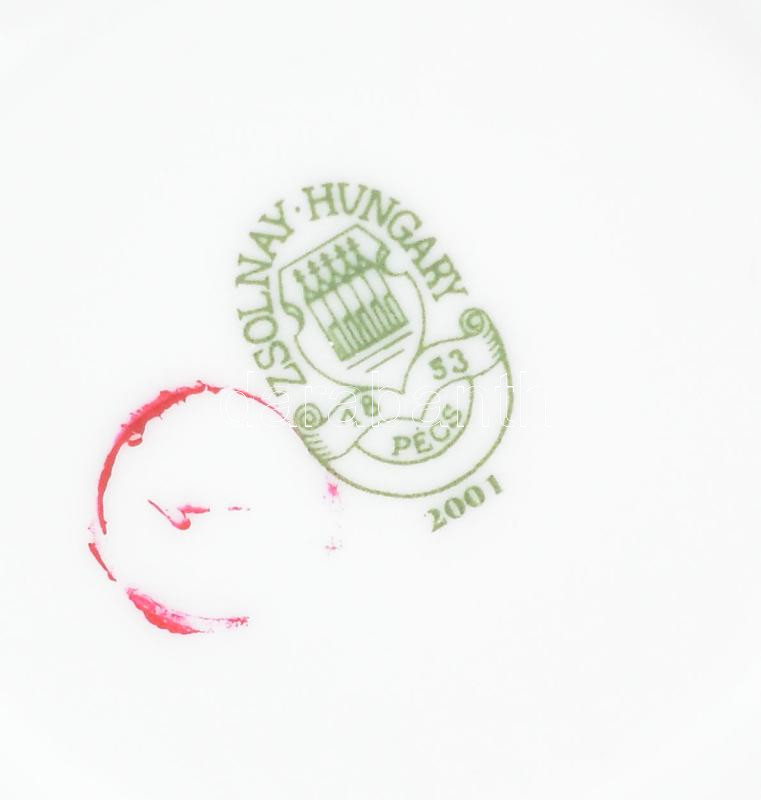 Zsolnay Stafír mokkás, kávés készlet, 9 részes (kanna, kiöntő, cukortartó, csészék és aljak), 24K aranykontúrral futtatva. Kézzel festett, jelzett (első osztályú), hibátlan. m: 4,5 - 16,5 cm. Szép vitrinkészlet, ideális ajándék esküvőre, évfordulóra, születésnapra.