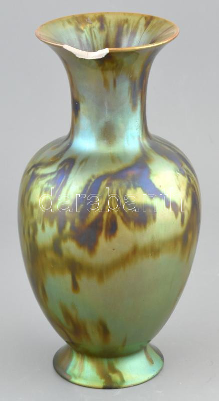 Beschreibung: Zsolnay labrador mázas váza, jelzett, 1920 körül, sérült, m: 26,5 cm